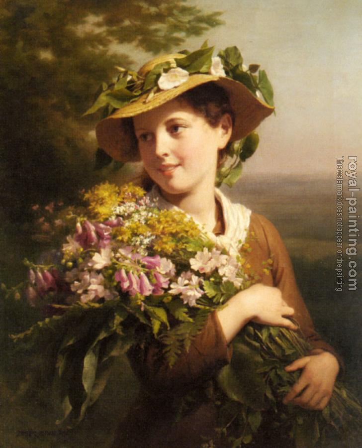 A Young Beauty holding a Bouquet of Flowers by Fritz Zuber-Buhler
