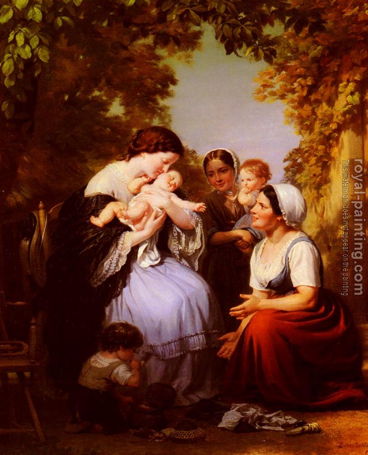 * Hand-painted Fritz Zuber-Buhler Oil Painting Reproduction : Maternity