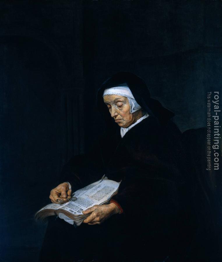 * Hand-painted Gabriel Metsu Oil Painting Reproduction : Old Woman Meditating