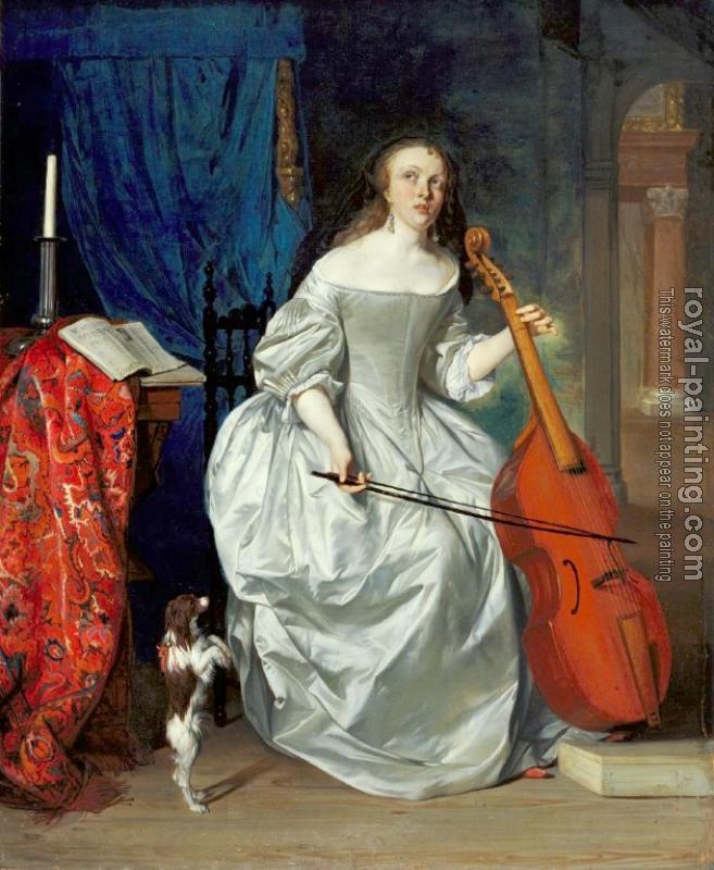 * Hand-painted Gabriel Metsu Oil Painting Reproduction : Woman Playing the Viola da Gamba