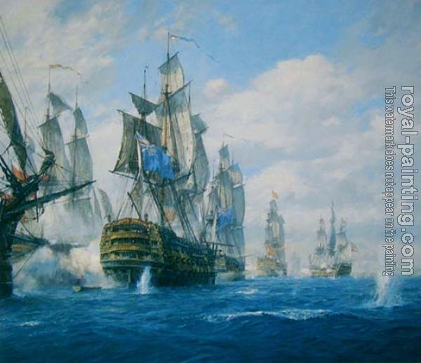 * Hand-painted Geoff Hunt Oil Painting Reproduction : The Battle of St. Vincent, 14th February, 1797
