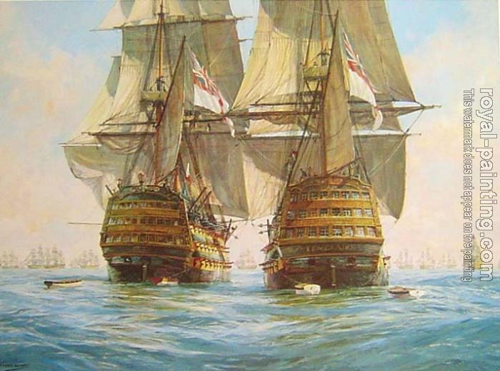Victory races Temeraire for the enemy line, Trafalgar, 21st October 1805 by Geoff Hunt