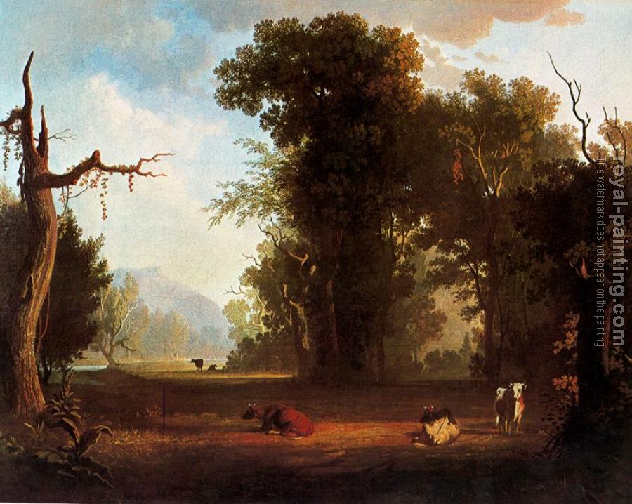 * Hand-painted George Caleb Bingham Oil Painting Reproduction : Landscape with Cattle