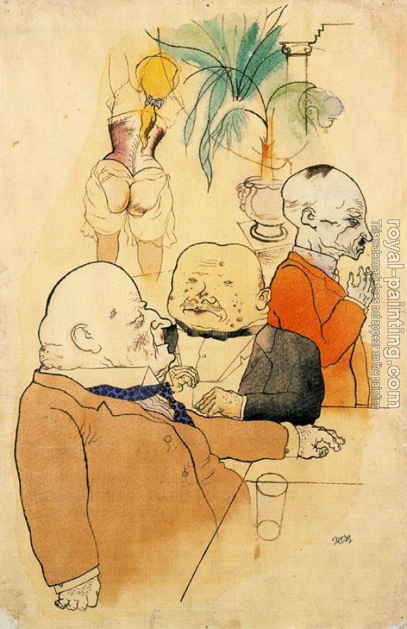 * Hand-painted George Grosz Oil Painting Reproduction : Am Tisch