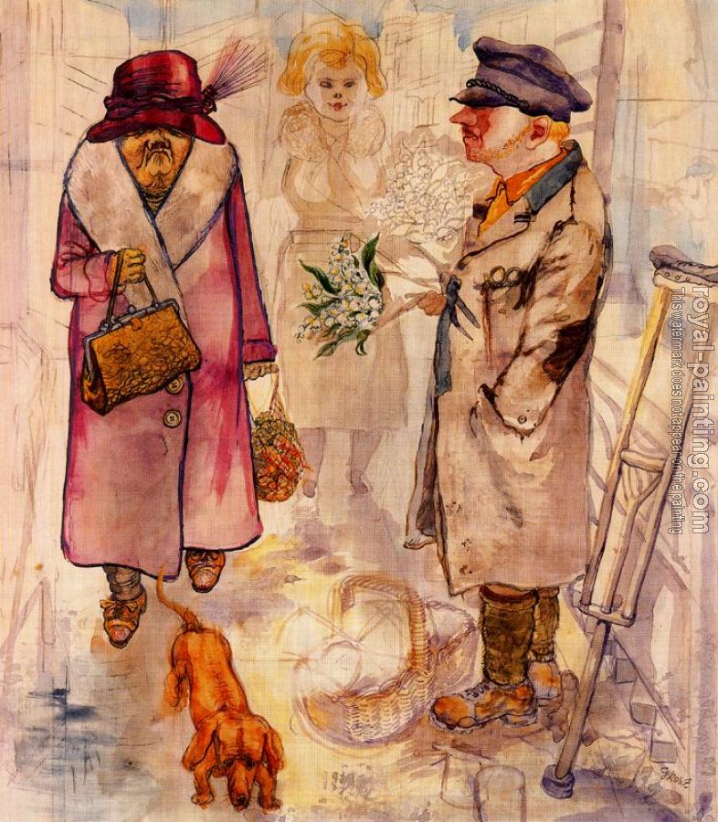 * Hand-painted George Grosz Oil Painting Reproduction : Der Blumenverkaufer