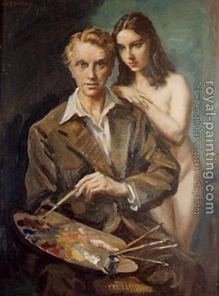 * Hand-painted George Owen Wynne Apperley Oil Painting Reproduction : artista y modelo