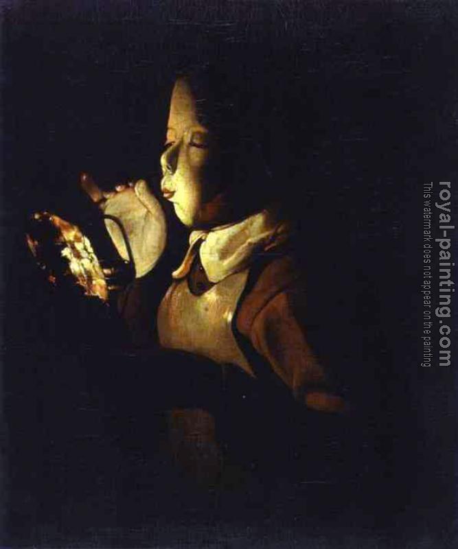 * Hand-painted Georges De La Tour Oil Painting Reproduction : Boy Blowing at Lamp