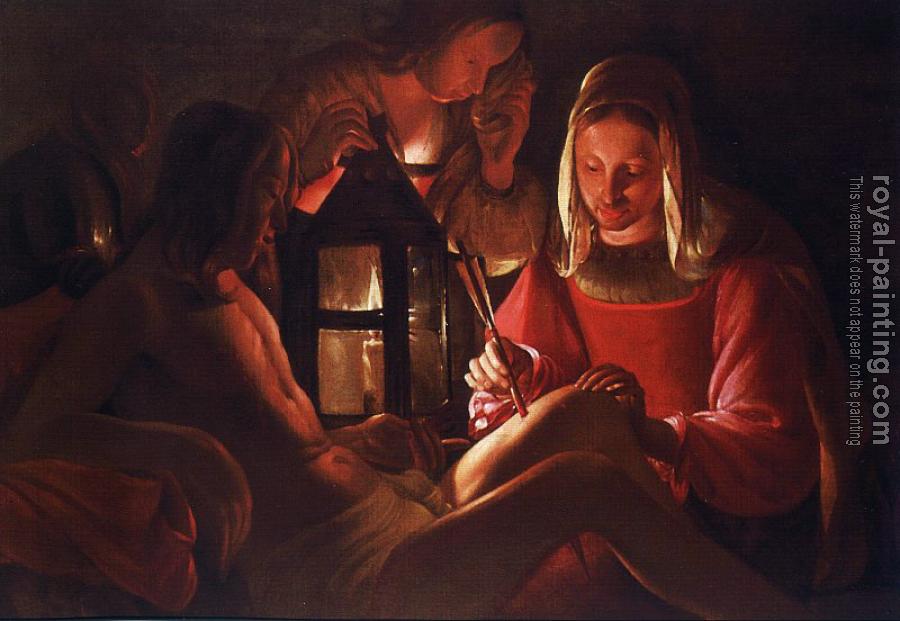 St Irene Removing Arrows from St Sebastians Leg by Georges De La Tour
