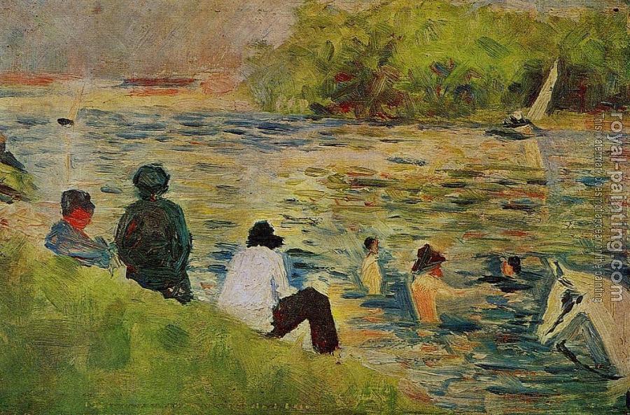 * Hand-painted Georges Seurat Oil Painting Reproduction : Bathing at Asnieres, The Bank of the Seine