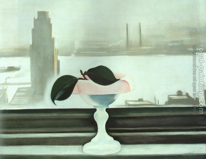 * Hand-painted Georgia O Keeffe Oil Painting Reproduction : Pink Dish and Green Leaves