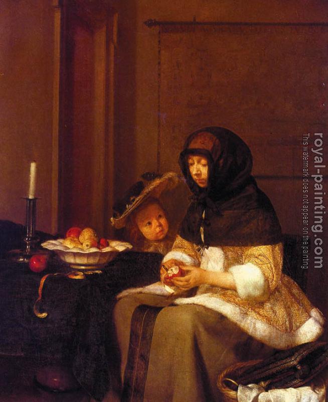 * Hand-painted Gerard Ter Borch Oil Painting Reproduction : Woman Peeling Apples