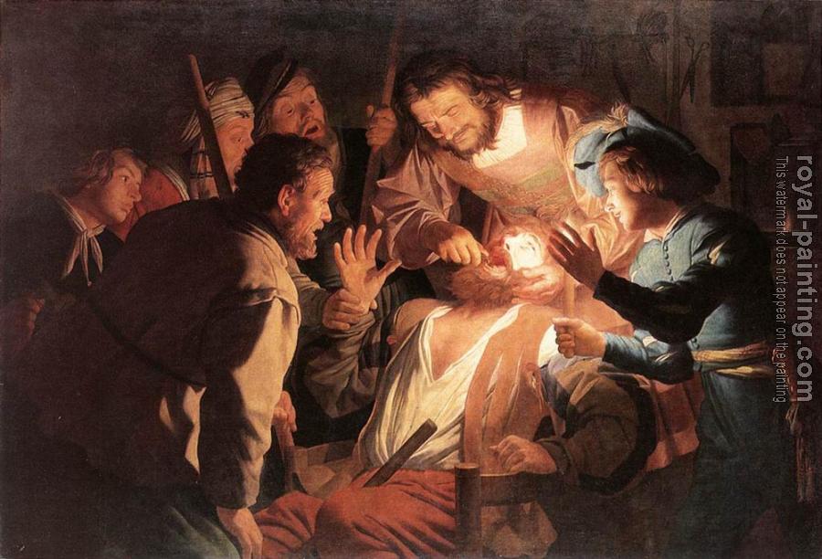 * Hand-painted Gerrit Van Honthorst Oil Painting Reproduction : The Dentist