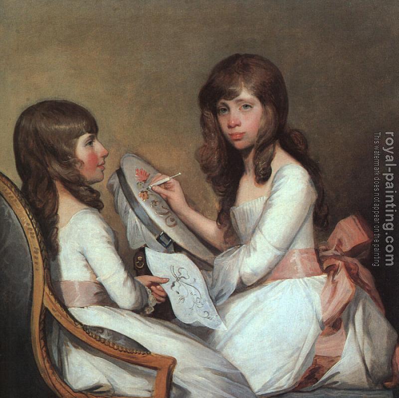 * Hand-painted Gilbert Charles Stuart Oil Painting Reproduction : Miss Dick and her Cousin Miss Forster