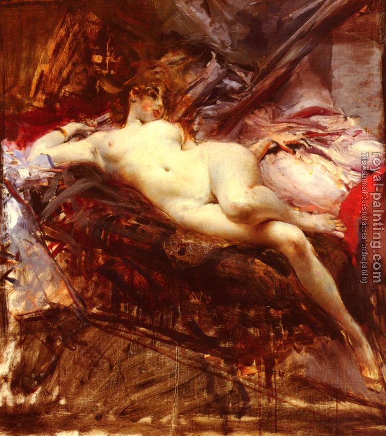 * Hand-painted Giovanni Boldini Oil Painting Reproduction : Reclining Nude II
