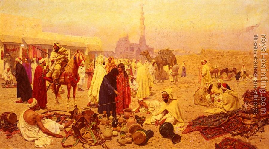 * Hand-painted Giulio Rosati Oil Painting Reproduction : An Arabian Market