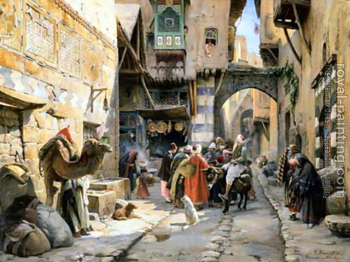 * Hand-painted Gustav Bauernfiend Oil Painting Reproduction : A Street Scene Damascus