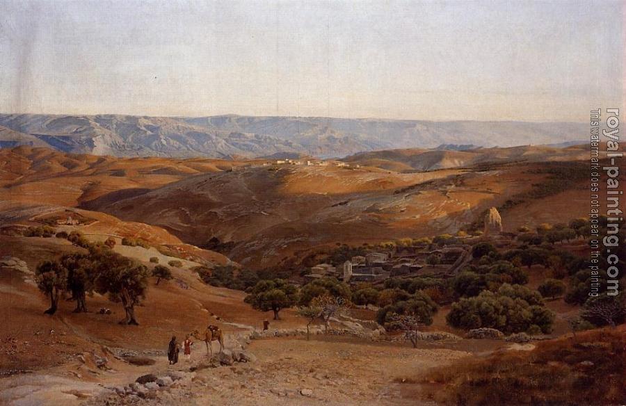 * Hand-painted Gustav Bauernfiend Oil Painting Reproduction : Mountains of Moab Seen from Bethany