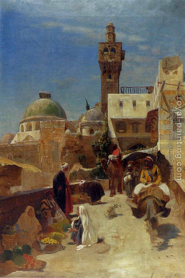 * Hand-painted Gustav Bauernfiend Oil Painting Reproduction : Oriental Street Scene