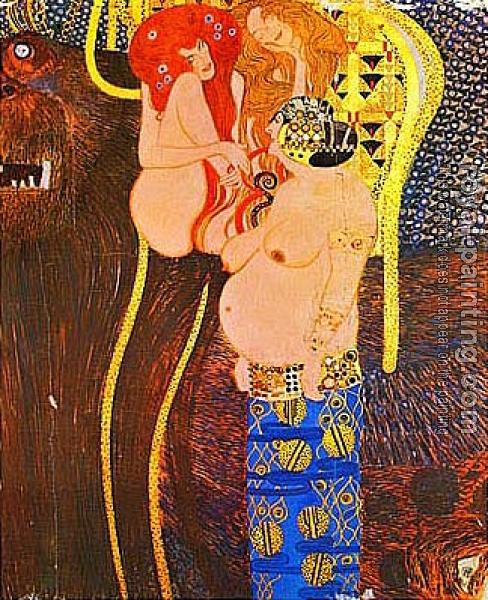 * Hand-painted Gustav Klimt Oil Painting Reproduction : The Beethoven Frieze: The Hostile Powers. Left part, detail