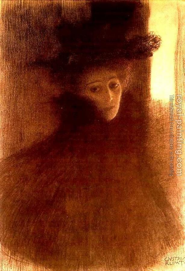 * Hand-painted Gustav Klimt Oil Painting Reproduction : Woman with a Cape and a Hat