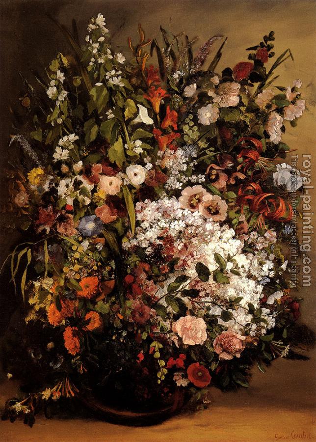 * Hand-painted Gustave Courbet Oil Painting Reproduction : Bouquet of Flowers in a Vase