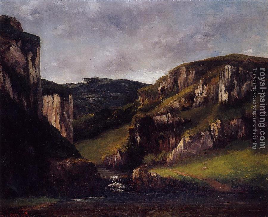 * Hand-painted Gustave Courbet Oil Painting Reproduction : Cliffs near Ornans