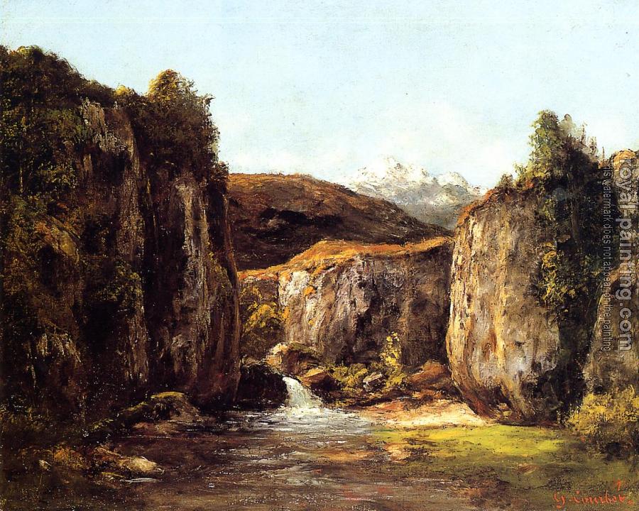 * Hand-painted Gustave Courbet Oil Painting Reproduction : Landscape: The Source among the Rocks of the Doubs