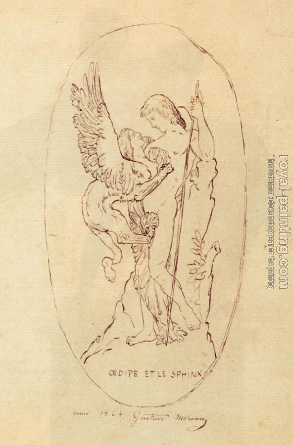 * Hand-painted Gustave Moreau Oil Painting Reproduction : Oedipe Et Le Sphinx