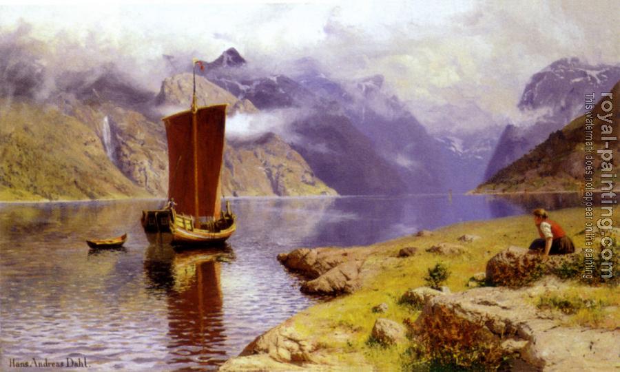 * Hand-painted Hans Dahl Oil Painting Reproduction : HansAndreasDahl AwaitingHisReturn Large