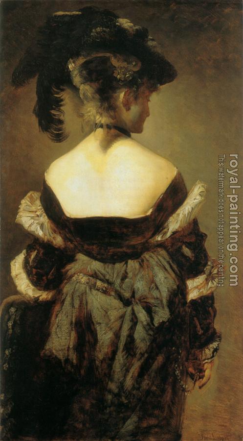 * Hand-painted Hans Makart Oil Painting Reproduction : dame mit federhut in ruckenansicht