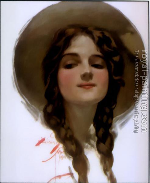 * Hand-painted Harrison Fisher Oil Painting Reproduction : A Prairie Belle