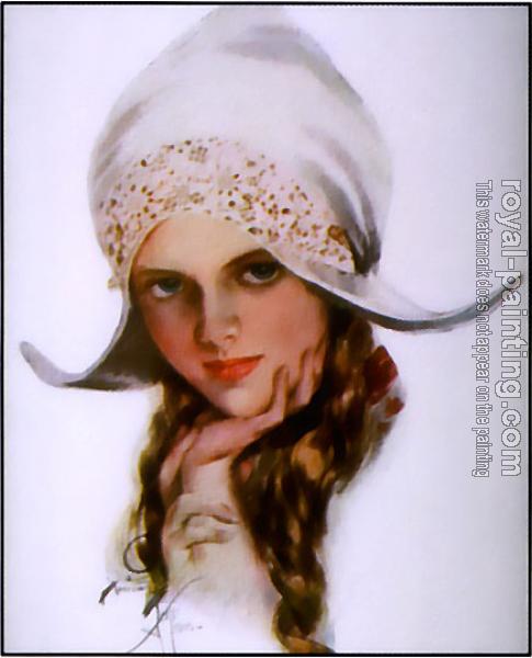 * Hand-painted Harrison Fisher Oil Painting Reproduction : Miss Knickerbocker