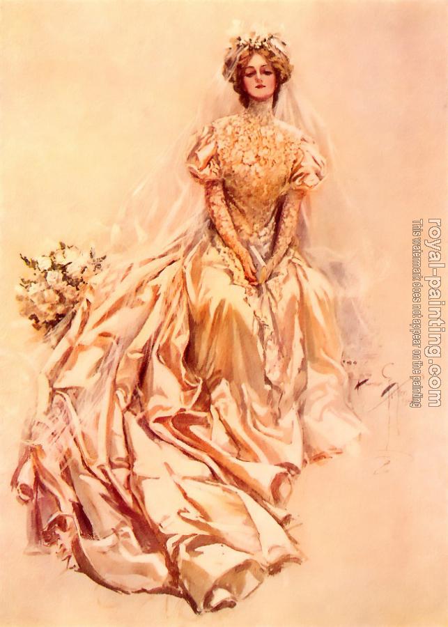 * Hand-painted Harrison Fisher Oil Painting Reproduction : Pensive bride