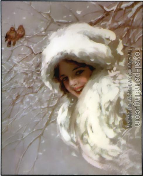 * Hand-painted Harrison Fisher Oil Painting Reproduction : Snowbirds