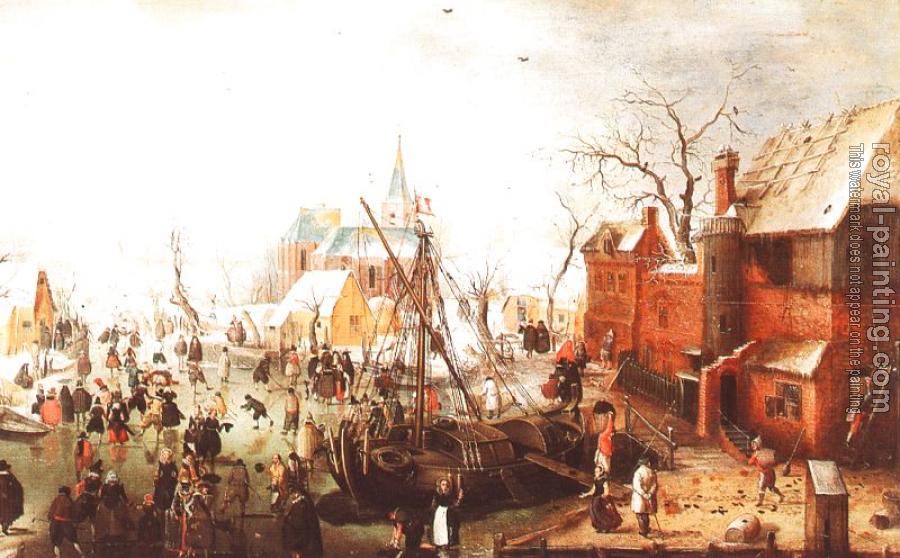 Graphic Winter Scene at Yselmuiden by Hendrick Avercamp