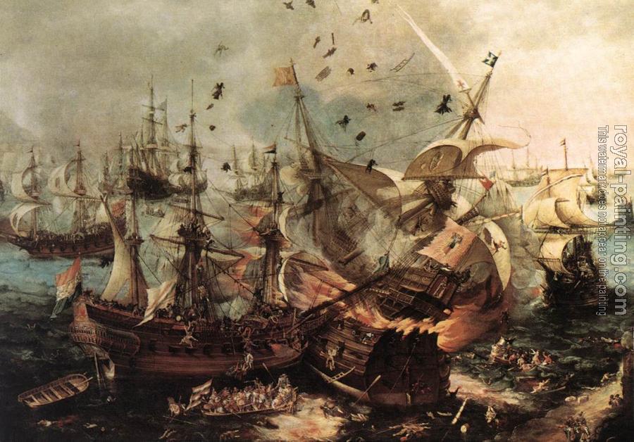* Hand-painted Hendrick Cornelisz Vroom Oil Painting Reproduction : Battle of Gibraltar