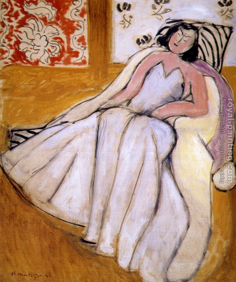 * Hand-painted Henri Emile Benoit Matisse Oil Painting Reproduction : young woman with white fur coat
