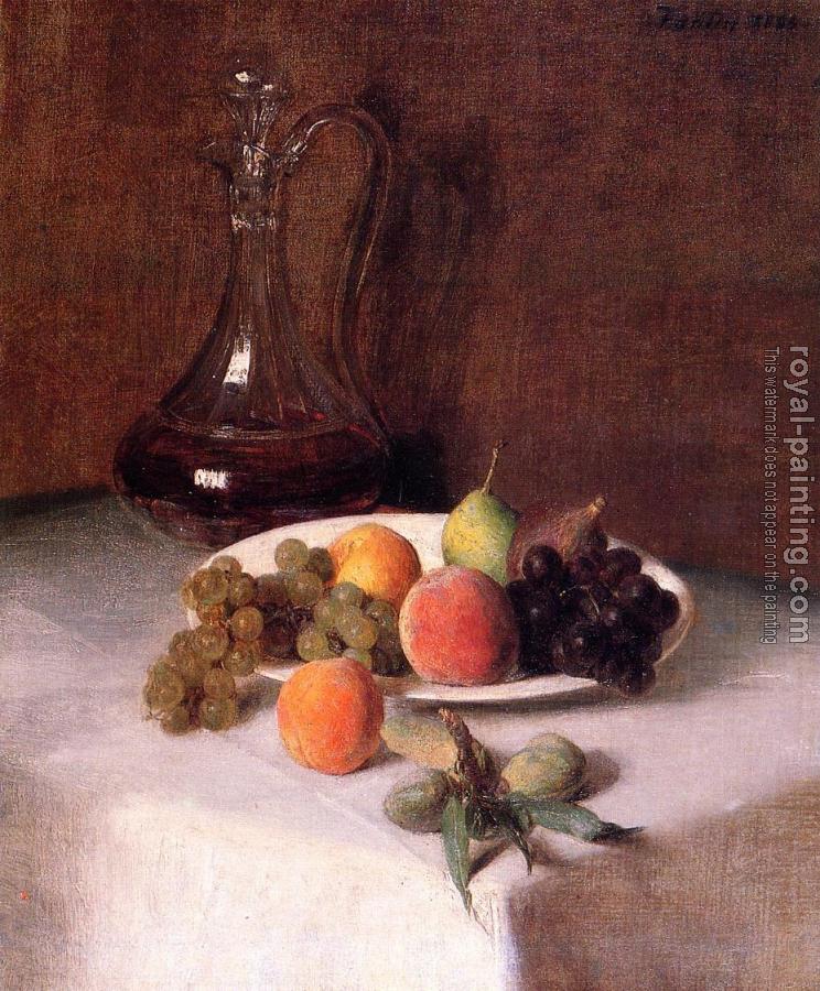 A Carafe of Wine and Plate of Fruit on a White Tablecloth by Henri Fantin-Latour