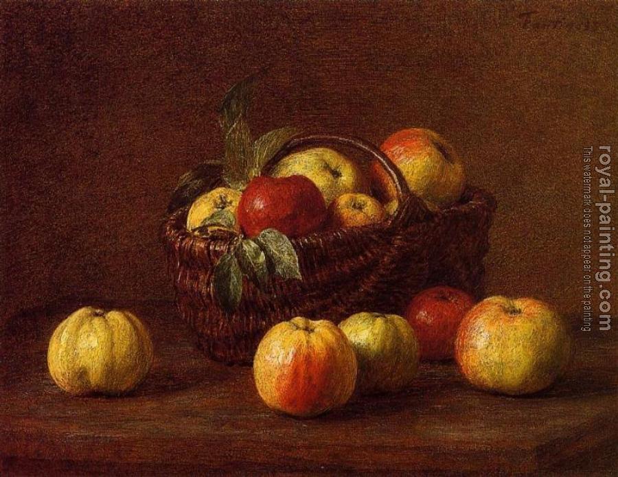 * Hand-painted Henri Fantin-Latour Oil Painting Reproduction : Apples in a Basket on a Table