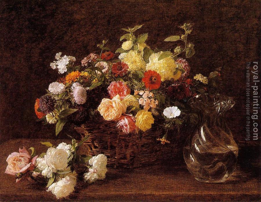 * Hand-painted Henri Fantin-Latour Oil Painting Reproduction : Basket of Flowers