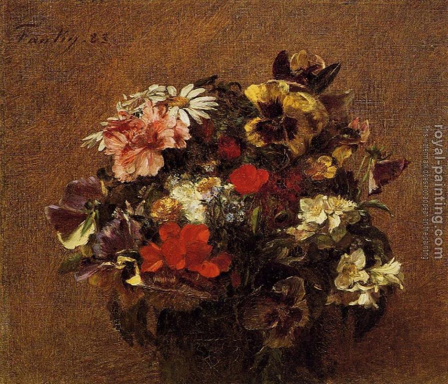 * Hand-painted Henri Fantin-Latour Oil Painting Reproduction : Bouquet of Flowers Pansies