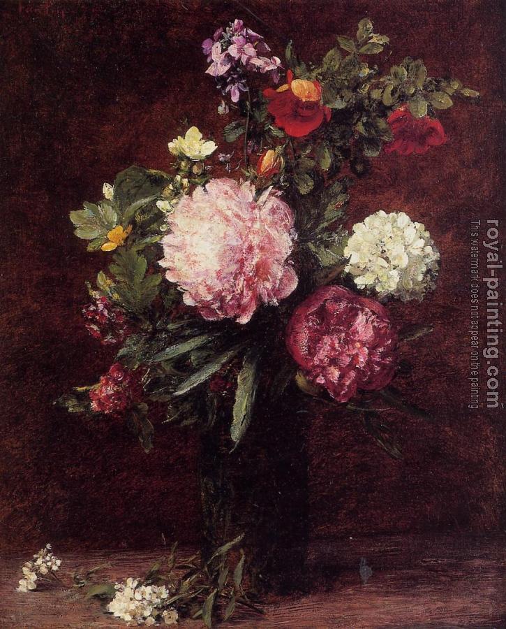 * Hand-painted Henri Fantin-Latour Oil Painting Reproduction : Flowers, Large Bouquet with Three Peonies