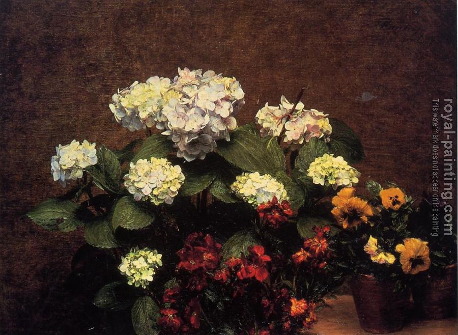 Hydrangias, Cloves and Two Pots of Pansies by Henri Fantin-Latour