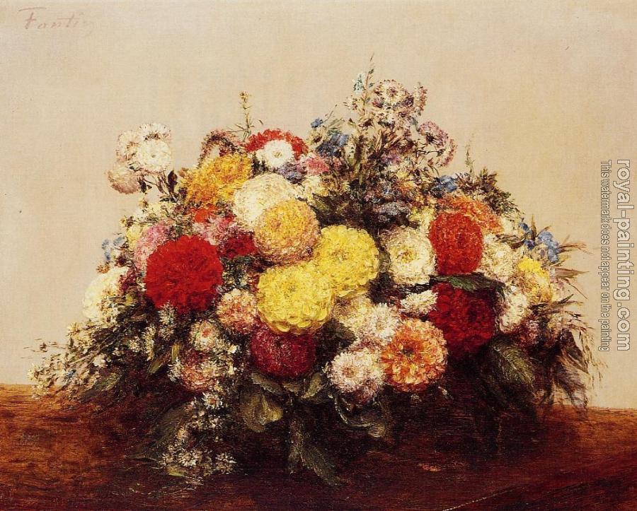 Large Vase of Dahlias and Assorted Flowers by Henri Fantin-Latour