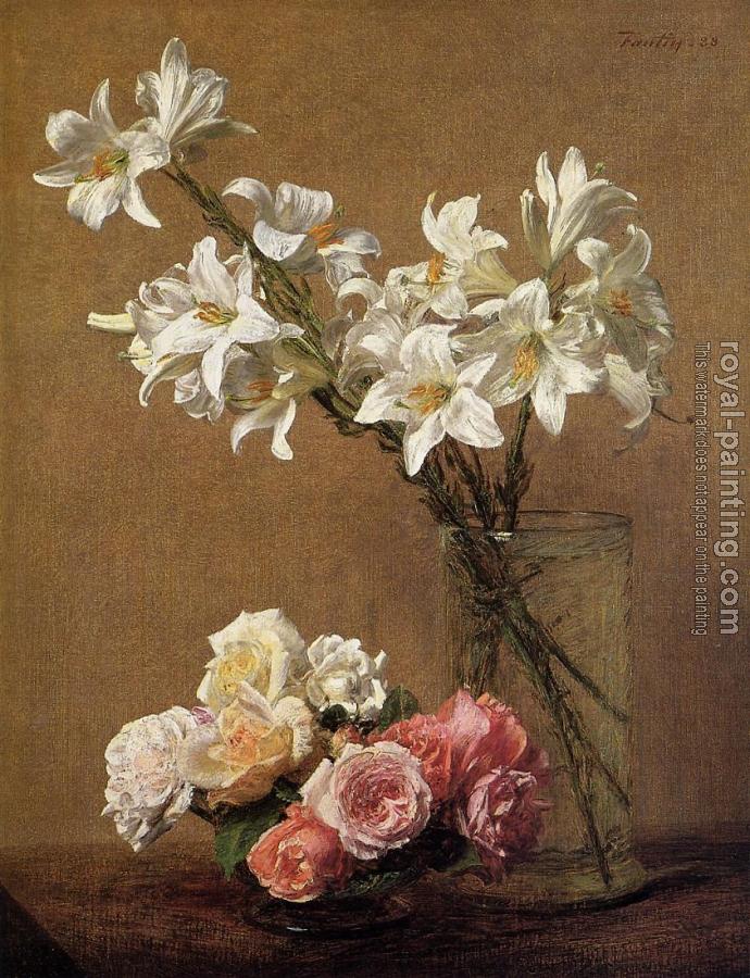* Hand-painted Henri Fantin-Latour Oil Painting Reproduction : Roses and Lilies