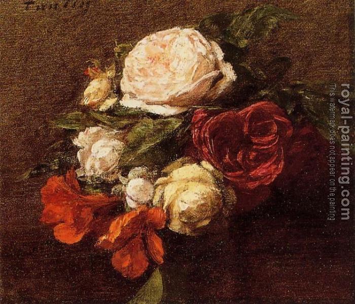 * Hand-painted Henri Fantin-Latour Oil Painting Reproduction : Roses and Nasturtiums