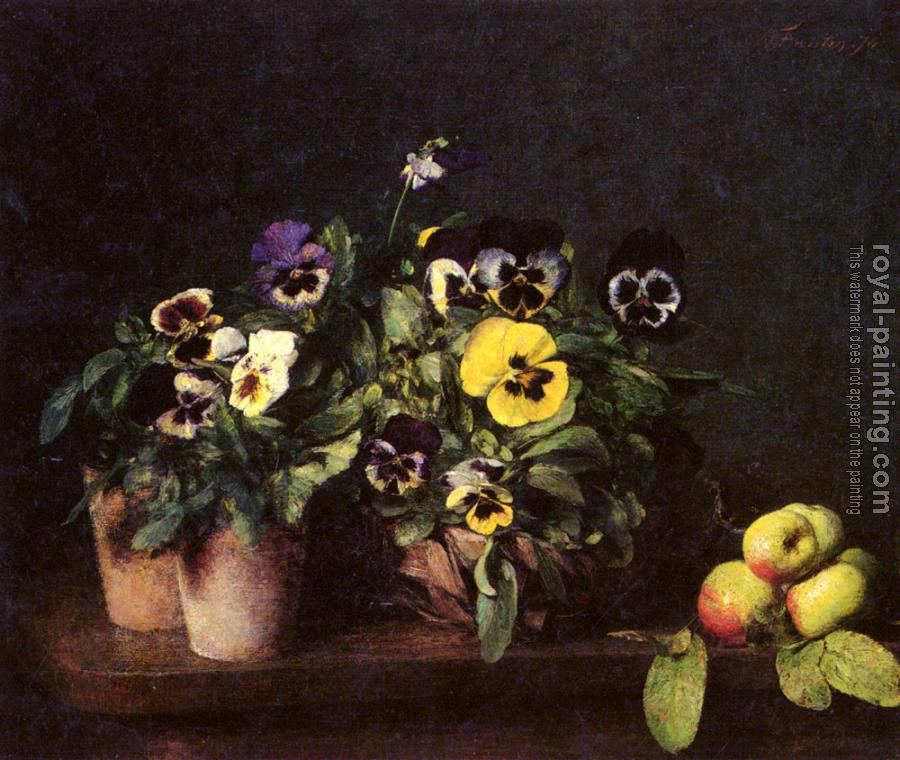 * Hand-painted Henri Fantin-Latour Oil Painting Reproduction : Still Life With Pansies