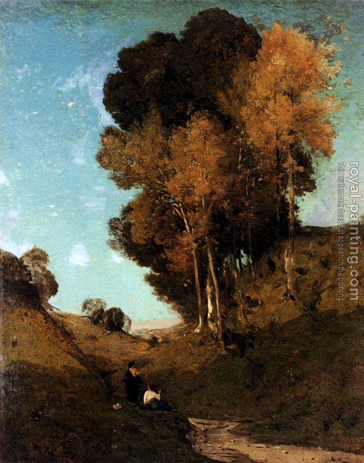 * Hand-painted Henri-Joseph Harpignies Oil Painting Reproduction : Ravin Souvenir De La Campagne De Rome