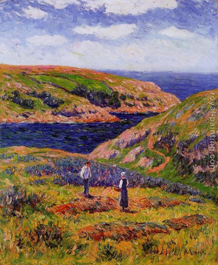 * Hand-painted Henri Moret Oil Painting Reproduction : Cliffs at Clohars, Caronet