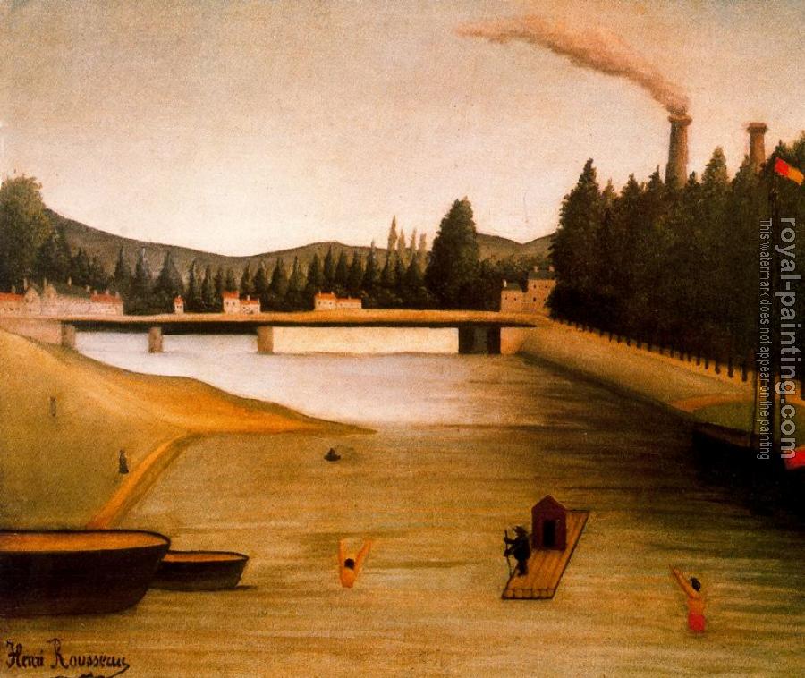 * Hand-painted Henri Rousseau Oil Painting Reproduction : Bathing at Alfortville